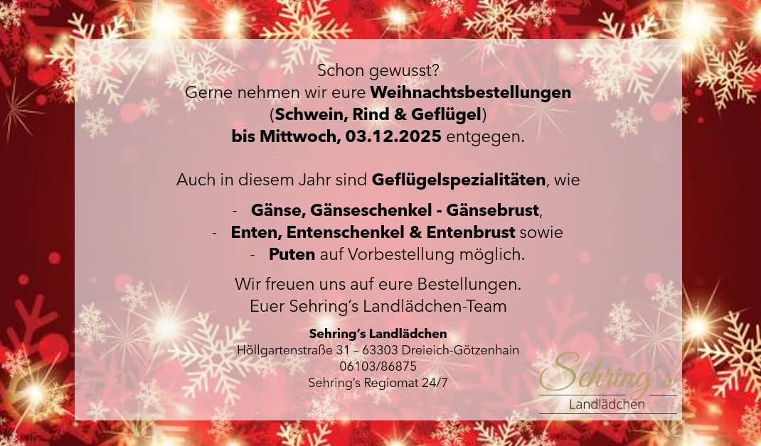 Gut zu wissen: Bestellungen nehmen wir gerne vorab unter 06103/86875 entgegen. Kartenzahlungen sind bei uns auch möglich.
