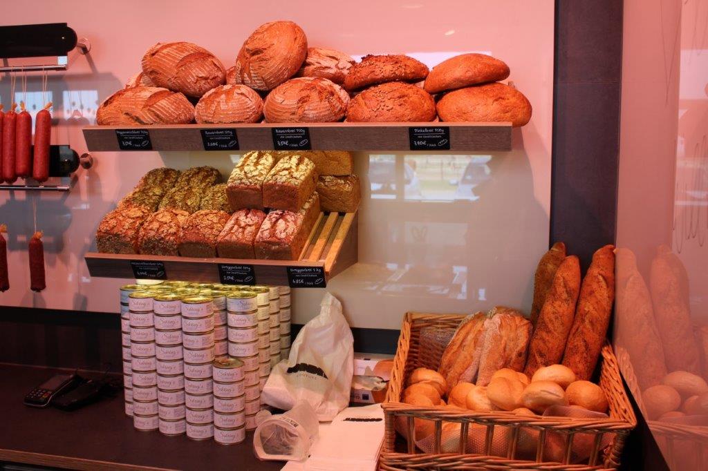 Dazu führen wir Backwaren von Cafe Ernst, einem Bäcker der Region, sowie saisonales Obst und Gemüse.