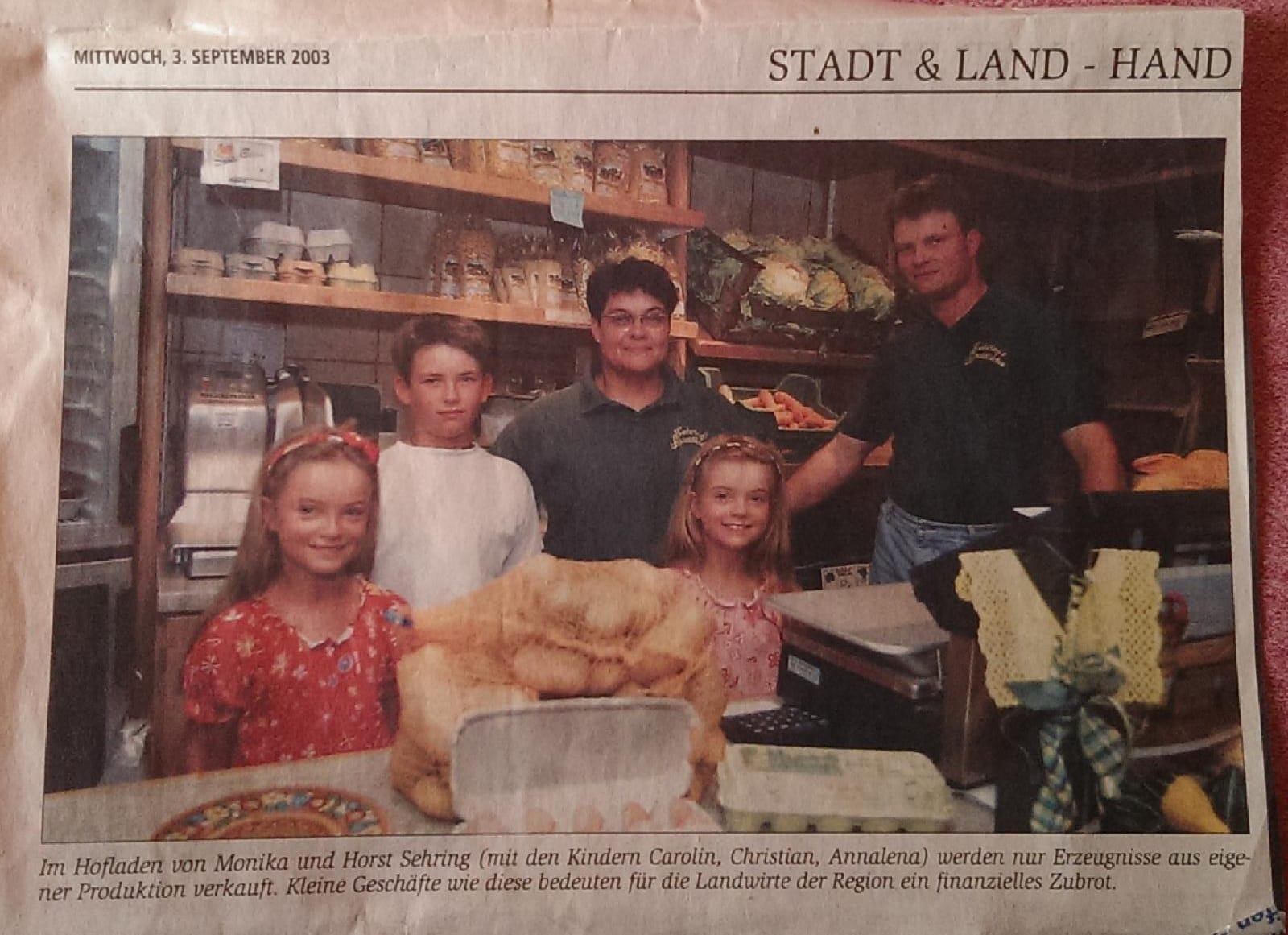 Daher möchten wir euch heute einen kleinen Einblick aus 2003 geben. Hier seht ihr ein Zeitungsbild, das zeigt, dass wir bereits seit über 17 Jahren unsere Produkte, sowie regionale Leckereien aus der Region anbieten. Getreu unserem Motto: Aus der Region - für die Region und mit ganz viel Herz. ♥️